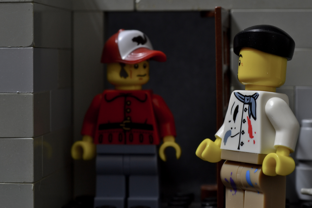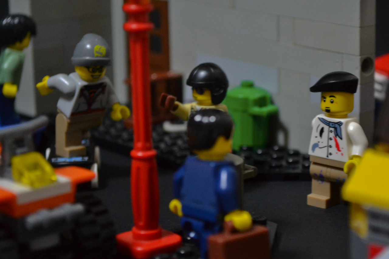 Las fotos las hago con una cámara Reflex, la Nikon D3100. En cuanto a como he hecho laas fotos, en las oscuras he puesto las minifiguras y escenarios sobre una cartulina negra que estaba doblada formando un ángulo de 90º con la pared. Lo que hacía era dejar caer sobre el MOC la parte vertical para que la oscuridad fuese mayor.