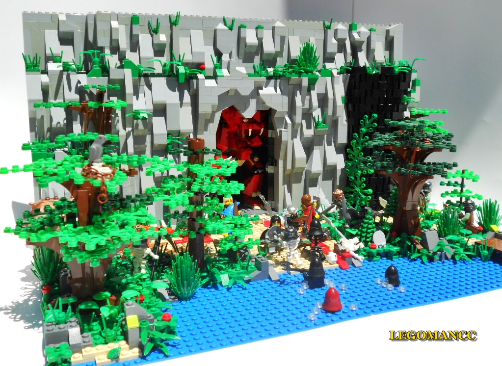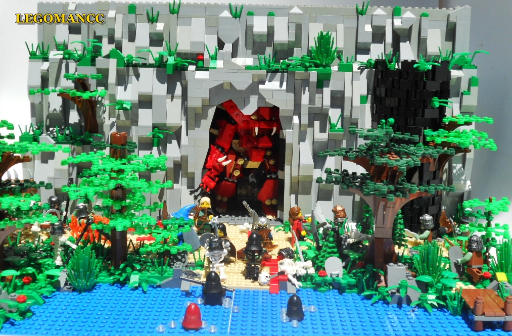 Muy buena escena, LEGOMAN, llena de buenísimos detalles. Todo el conjunto es espectacular. Esa pared llena de vegetación en combinación con los árboles y el monstruo asomando estan genial.