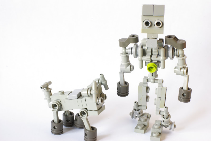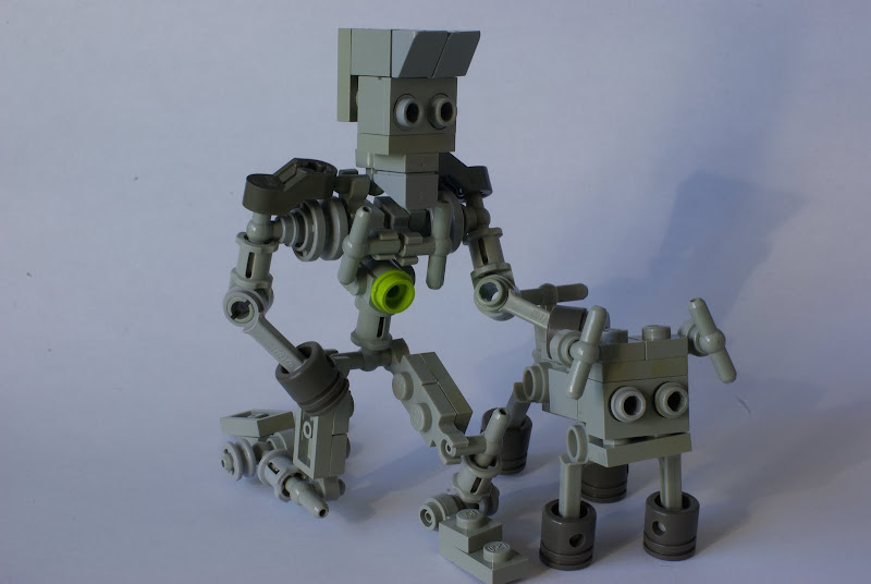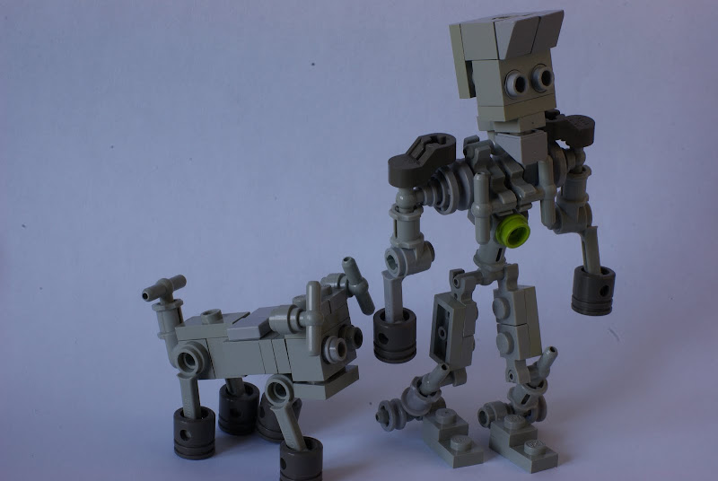 Hola a todos, os presento a una pareja un poco peculiar. Jugando con piezas un poco viejas (se nota en el color) conseguidas por internet ya hace tiempo, he creado esta pareja que me ha parecido graciosa, un humanoide y un perro robot, a los que he llamado como dice el titulo del mensaje, espero que os guste.
