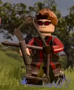 Al parecer es Hawkeye (Ojo de Halcón) en su versión de la nueva película 'The Avengers', que por cierto no me acaba de convencer,   en mi opinión, las gafas sobran 8=. Por cierto, ¿se sabe si el molde que se usó para la máscara Deadpool (el que está dentro del helicóptero) va a ser el mismo que se usará para los nuevos sets del Hombre Araña, o será la cabeza normal de una minifigura serigrafiada?