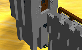 En mis gráficos he usado la torre modificada a la que cambié la puerta juniorizada por piezas estándar (esa pieza no es fácil de conseguir, la mayor parte de los presentes usará un arco normal. He usado esa versión "recortada" porque se ajusta mucho mejor al concepto modular ya que permite "sacar más aún las BP", dejando más espacio libre al señor del castillo.