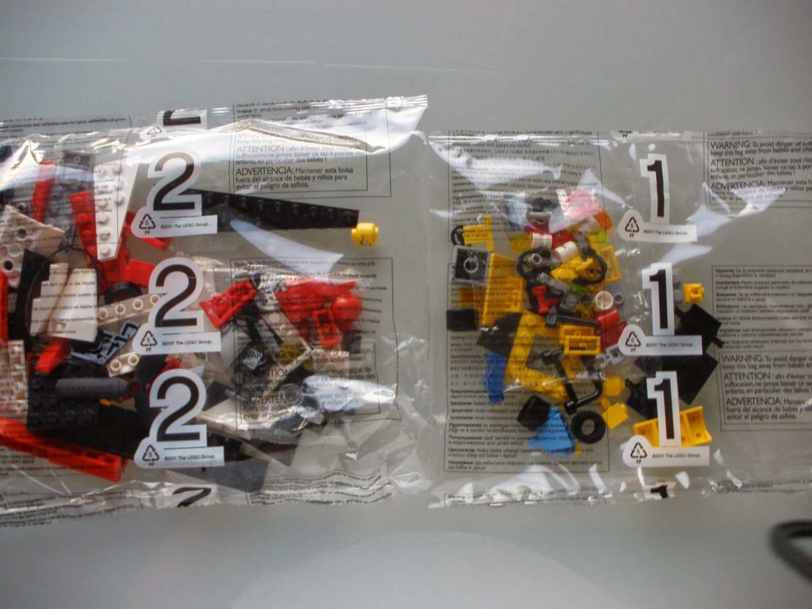 Las piezas que vienen en la primera bolsa sirven para construir el coche. Además viene otra bolsa con piezas más pequeñas. No hay ninguna pieza destacable excepto los cascos del operario que se ponen en la gorra.