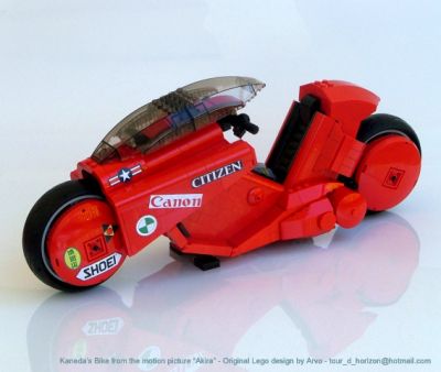 A pesar de que el manga no me gusta nada de nada (yo me quedé en Mazinger Z y Comando G...), primero, la moto es una pasada, y segundo, la réplica es casi perfecta del original. Si a eso añadimos la dificultad de las formas redondeadas en LEGO... eso sí, a pesar de que sean pocas piezas, algunas parecen muy específicas, es decir... BrickLink... ¿dónde has celebrado el bautizo?, ¿en un garage con coca cola y sandwiches?  :D :D