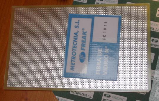 En cuanto a pista de prototipos (ya sé qué tengo que pedir en la tienda :D) hoy en el trabajo también me han hablado de unas placas verdes que cortas a medida para tu proyecto, marcas las pistas con un rotulador especial y bañas en algún producto (agua oxigenada?) para eliminar el conductor de las partes que quedan expuestas... aunque me in¡magino que será mas caro y no sé si merecerá la pena.