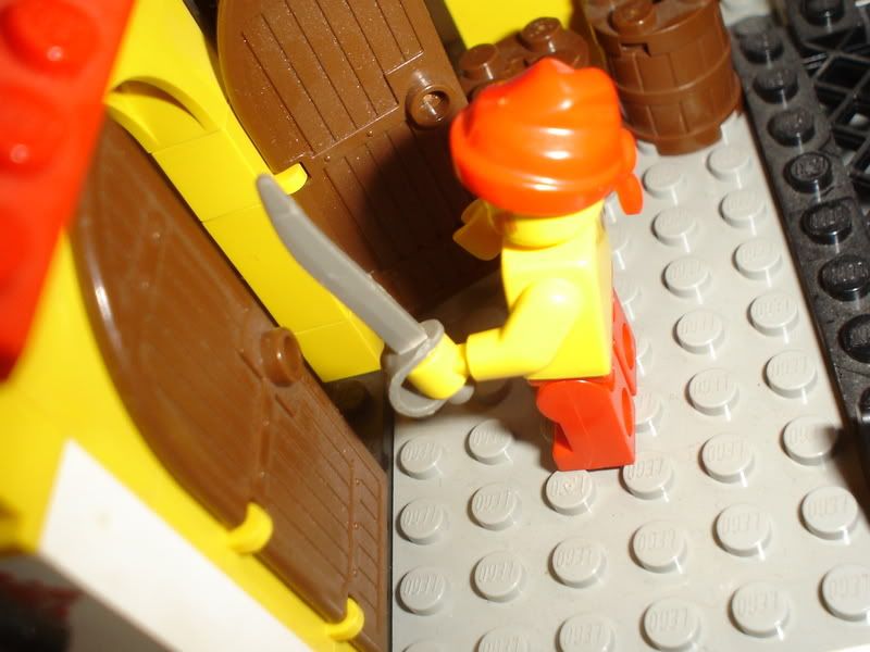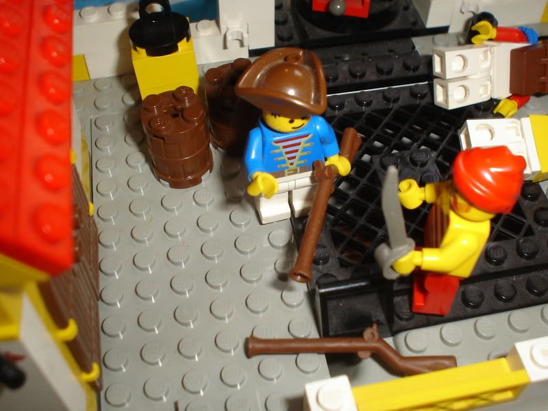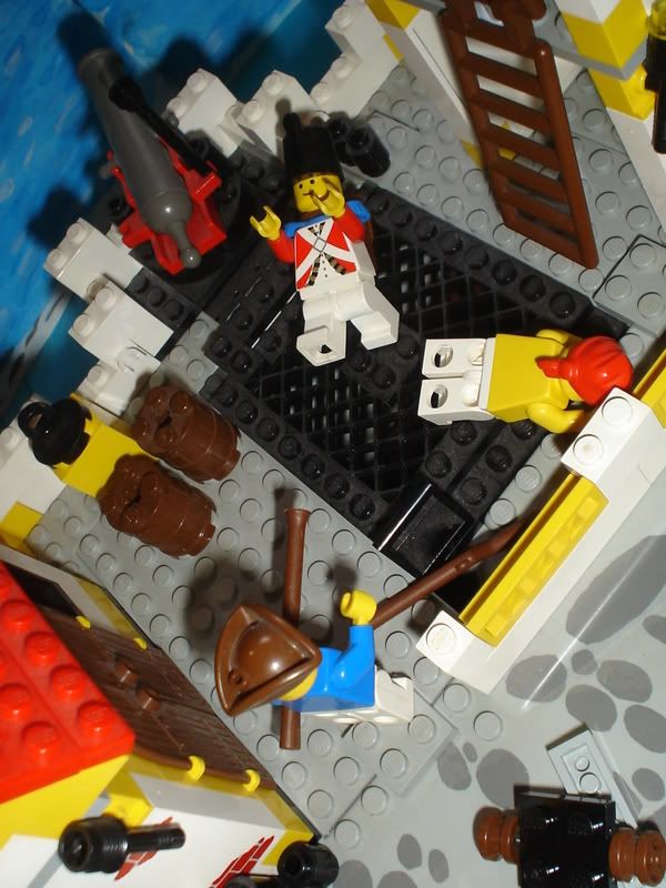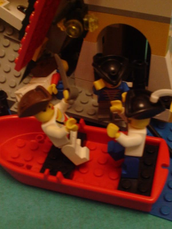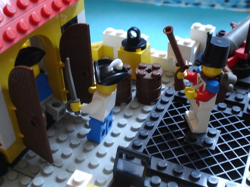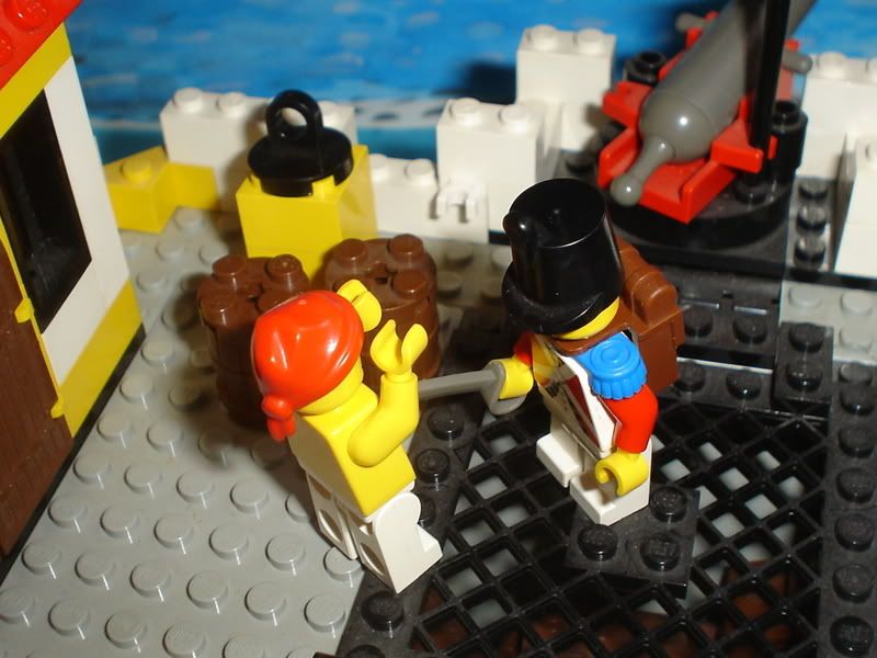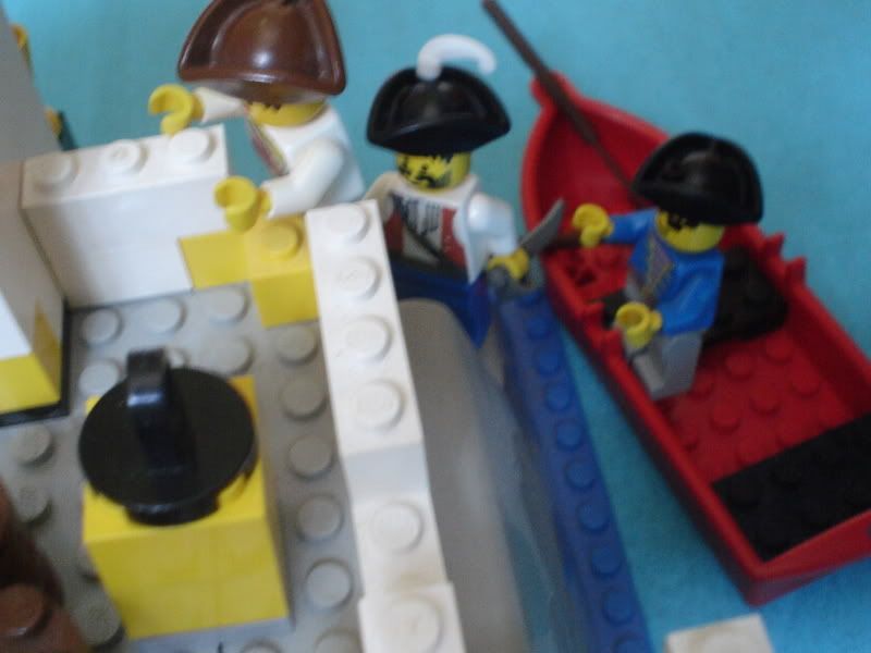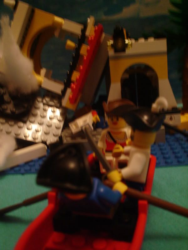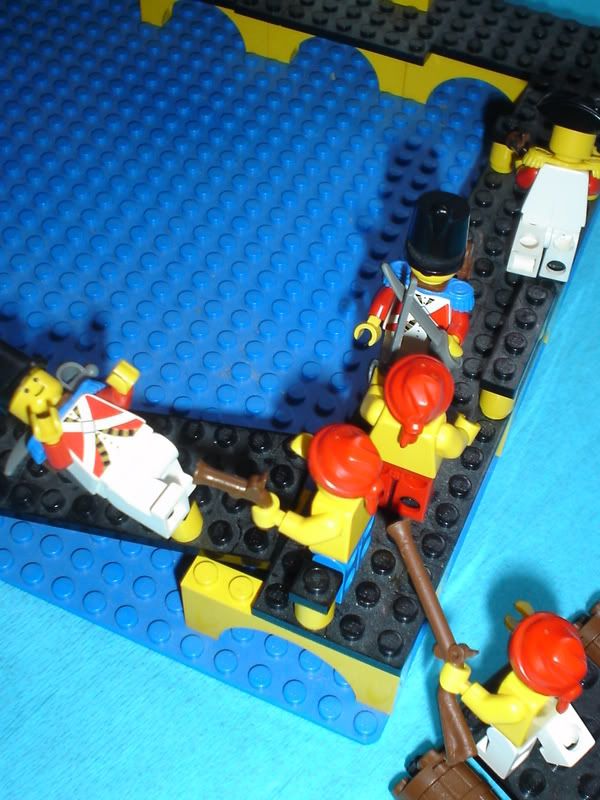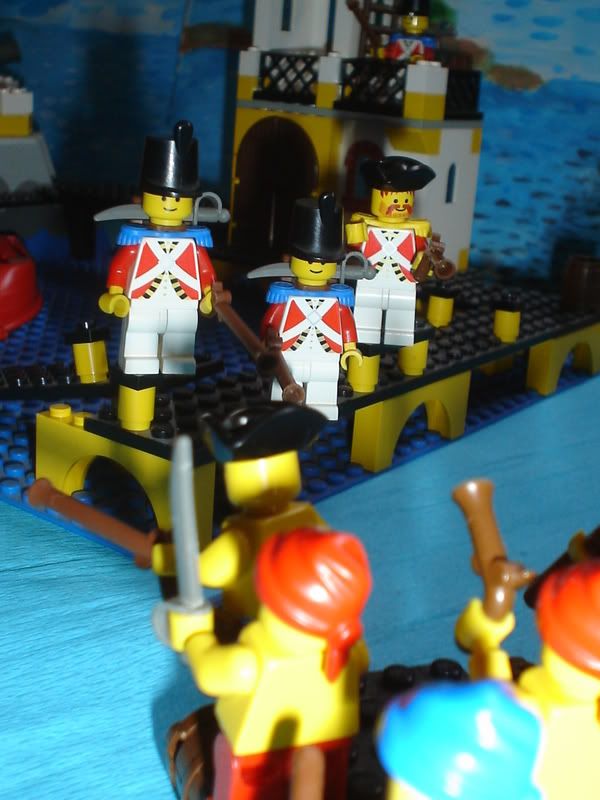 En el, la actividad era frenética, soldados por todas partes, al fondo, el "Tiburón Negro" y los piratas del capitán Roger, cada vez mas cerca. Para evitar levantar sospechas fueron por la parte trasera y se encaramaron a la muralla.