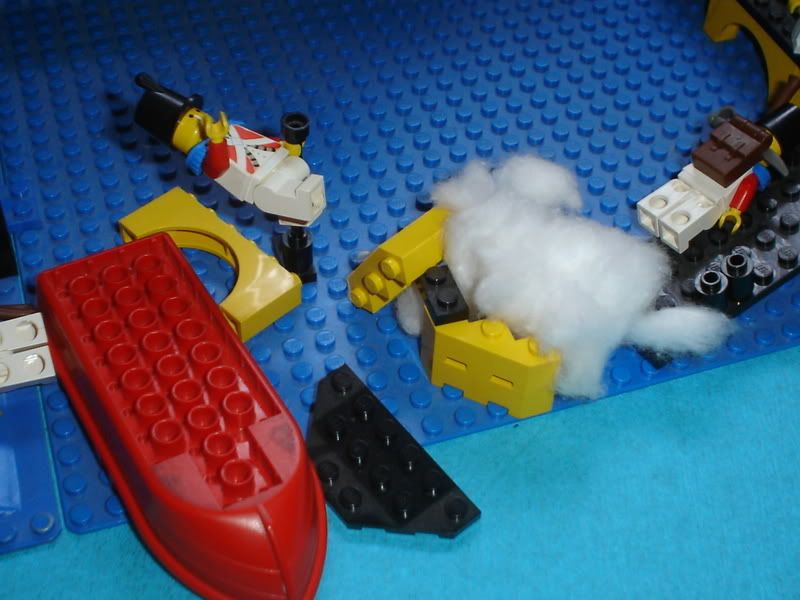 y esta vez si, los cañonazos impactaron contra la pieza que defendía la entrada al puerto volando parte de este por los aires.