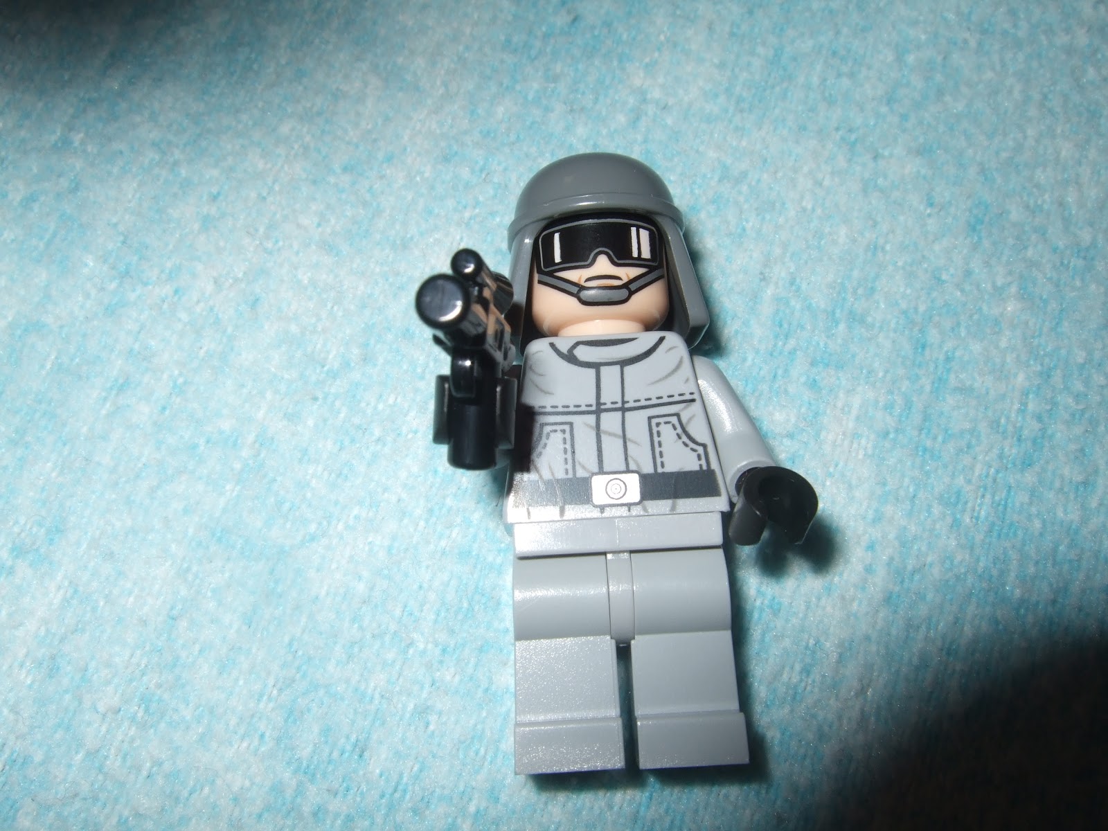 La minifig trae la dos caras, una con visor y otra sin él, equipada con una pistola
