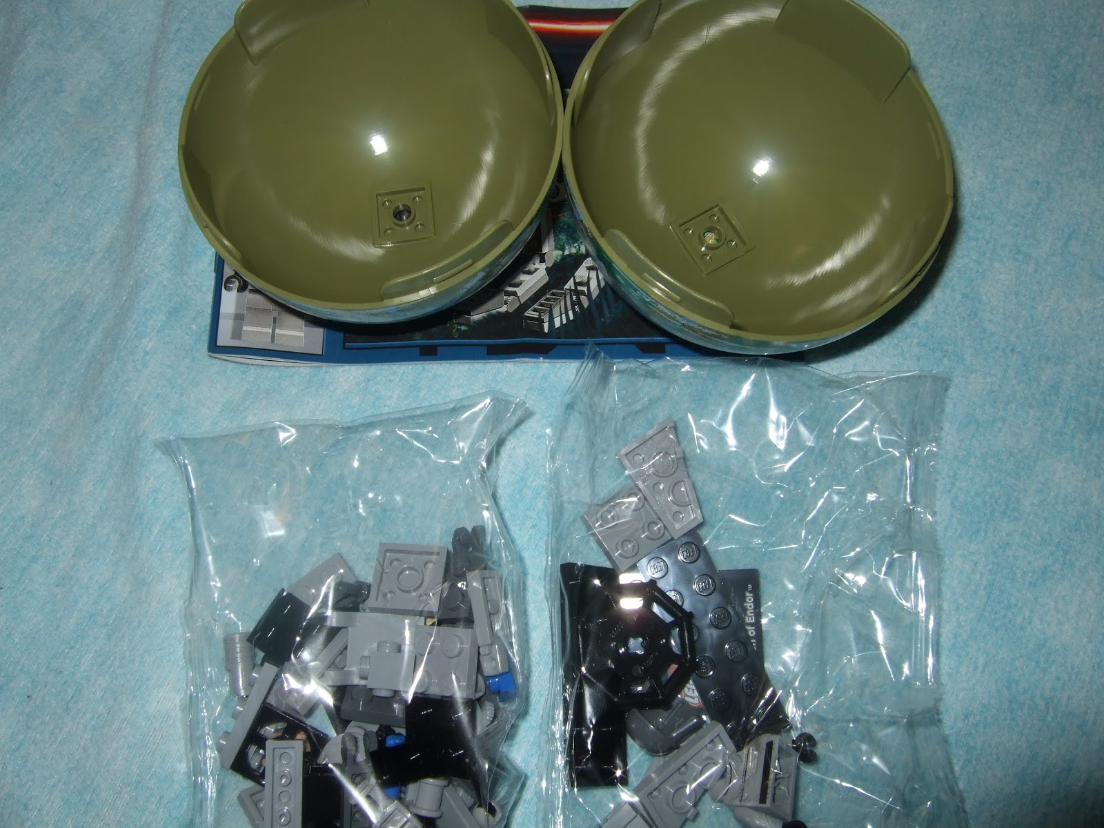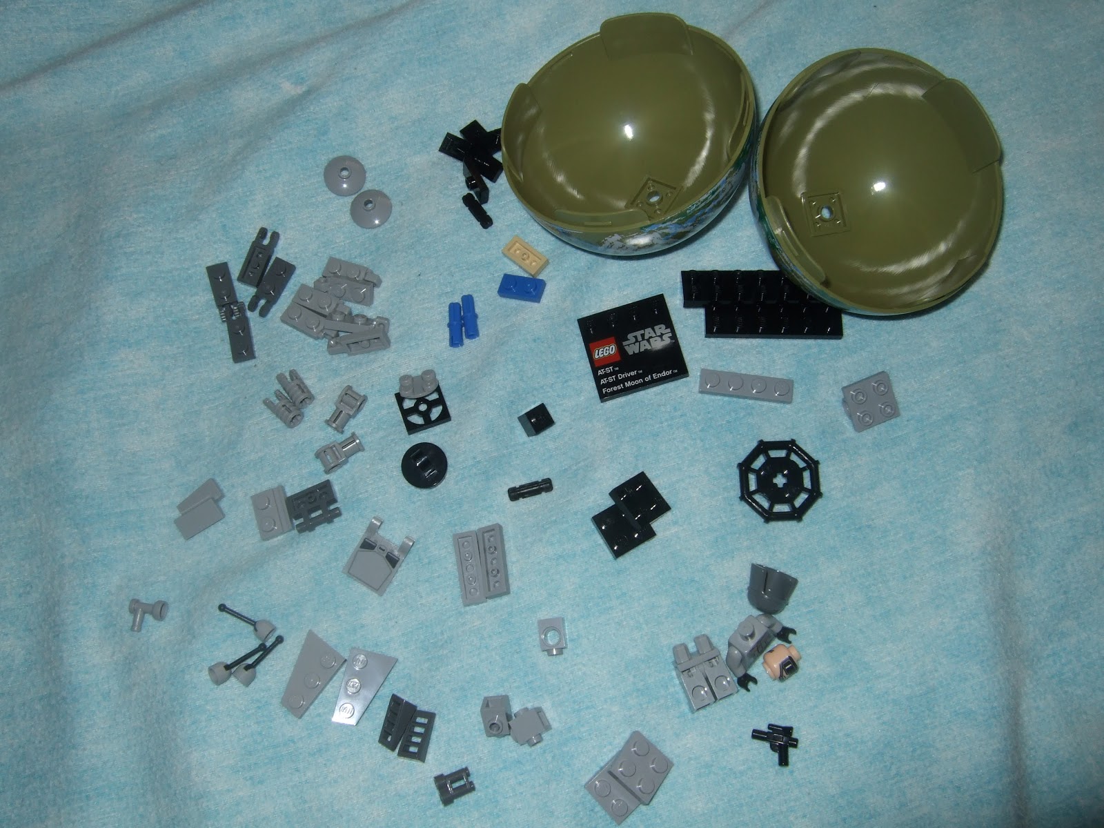Dentro de la bola trae las piezas, como se puede ver trae dos plates 1x2 blue y tan algo que hace mucho Lego que trae piezas de colores que después se camuflan